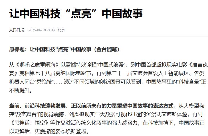 原标题:让中国科技“点亮”中国故事(金台随笔)从《哪吒之魔童