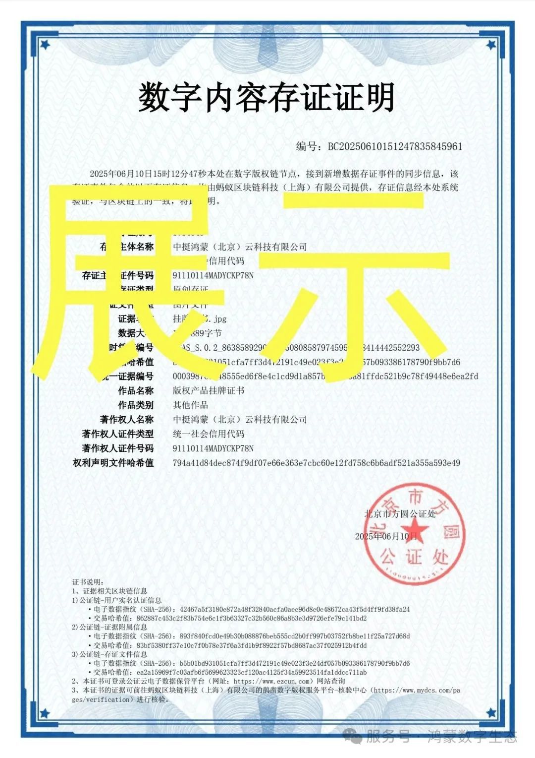 2025年6月5日著作权人中挺鸿蒙(北京)云科技有限公司,在