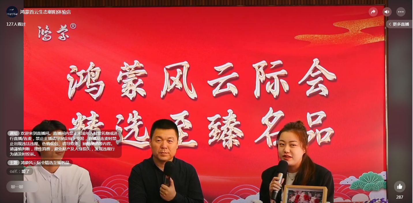 11月3日下午,亿枝花新品牌通过鸿蒙的平台直播招募合作伙伴。