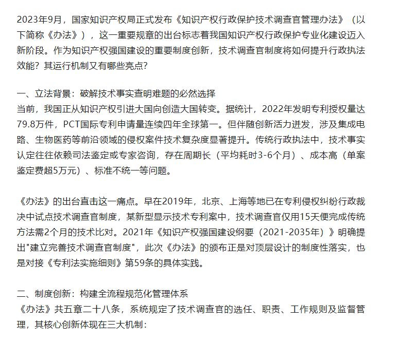 2023年9月,国家知识产权局正式发布《知识产权行政保护技术