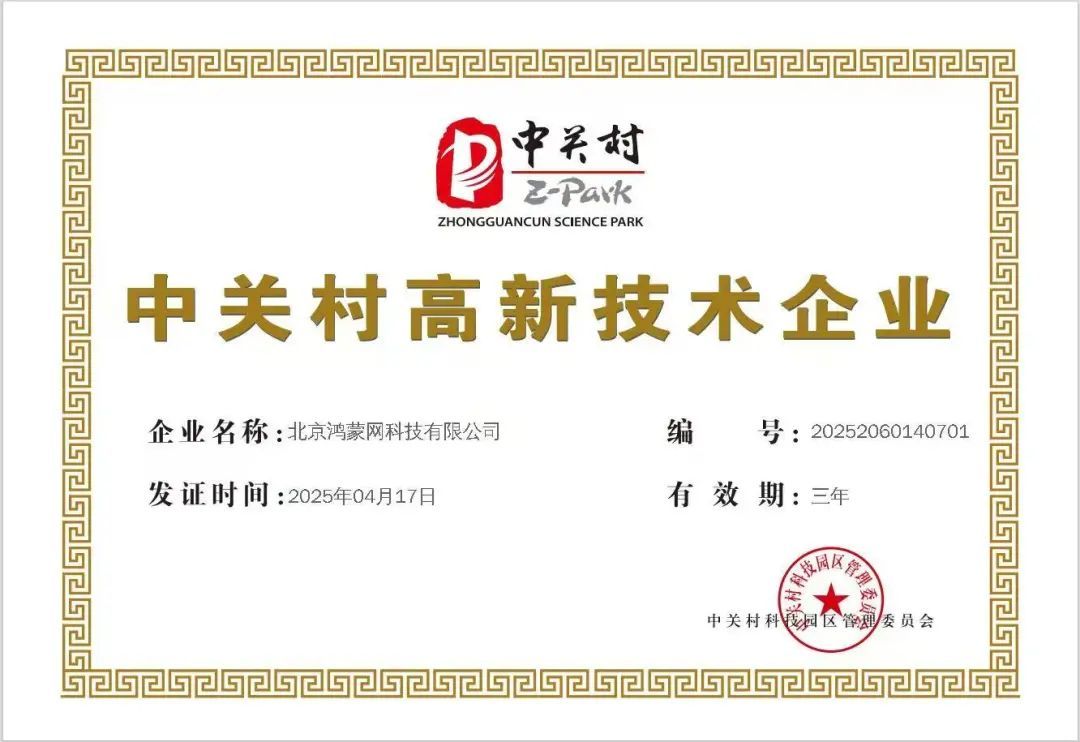 近日,经中关村科技园区管理委员会严格评审,鸿蒙公司凭借卓越的