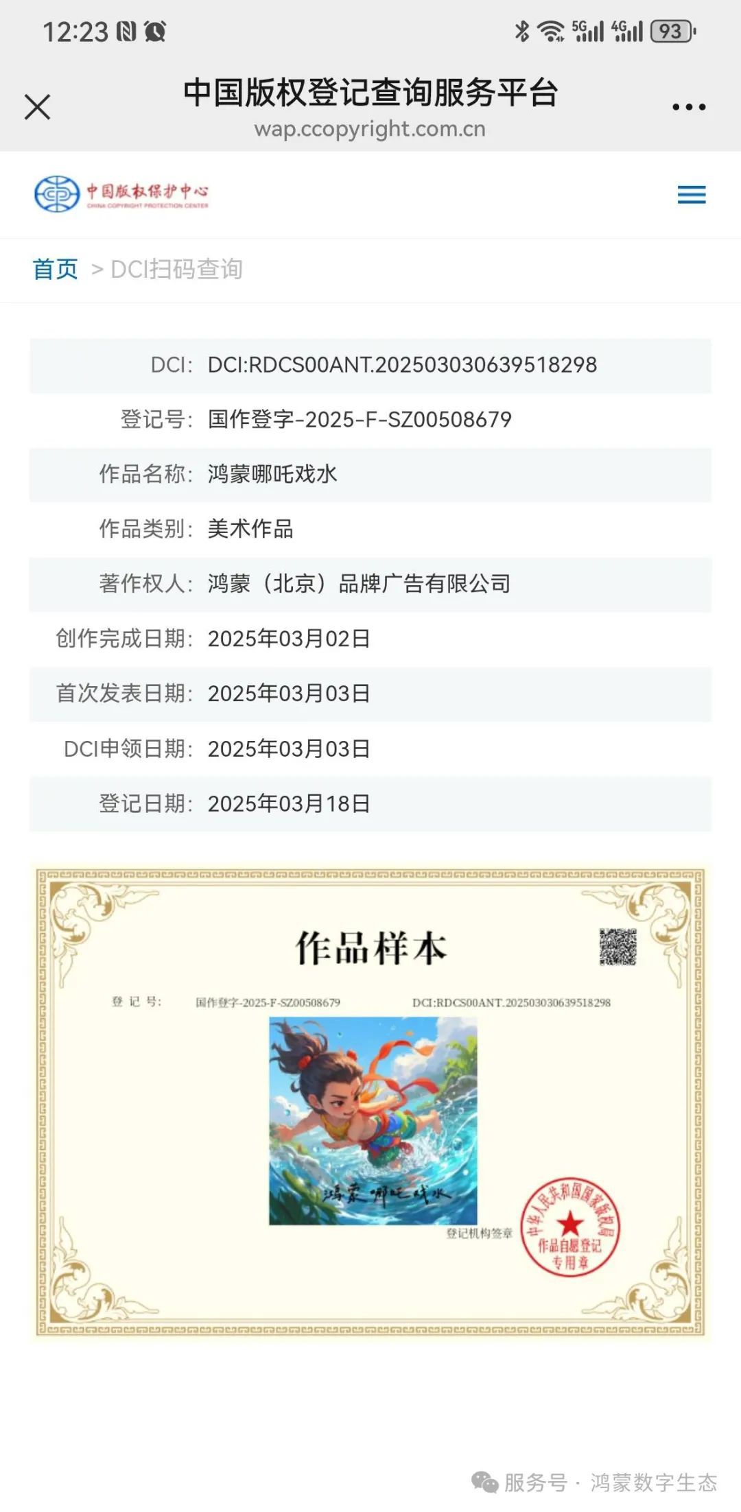 【鸿蒙数字版权服务公共空间】系统于2025年3月26日获得国
