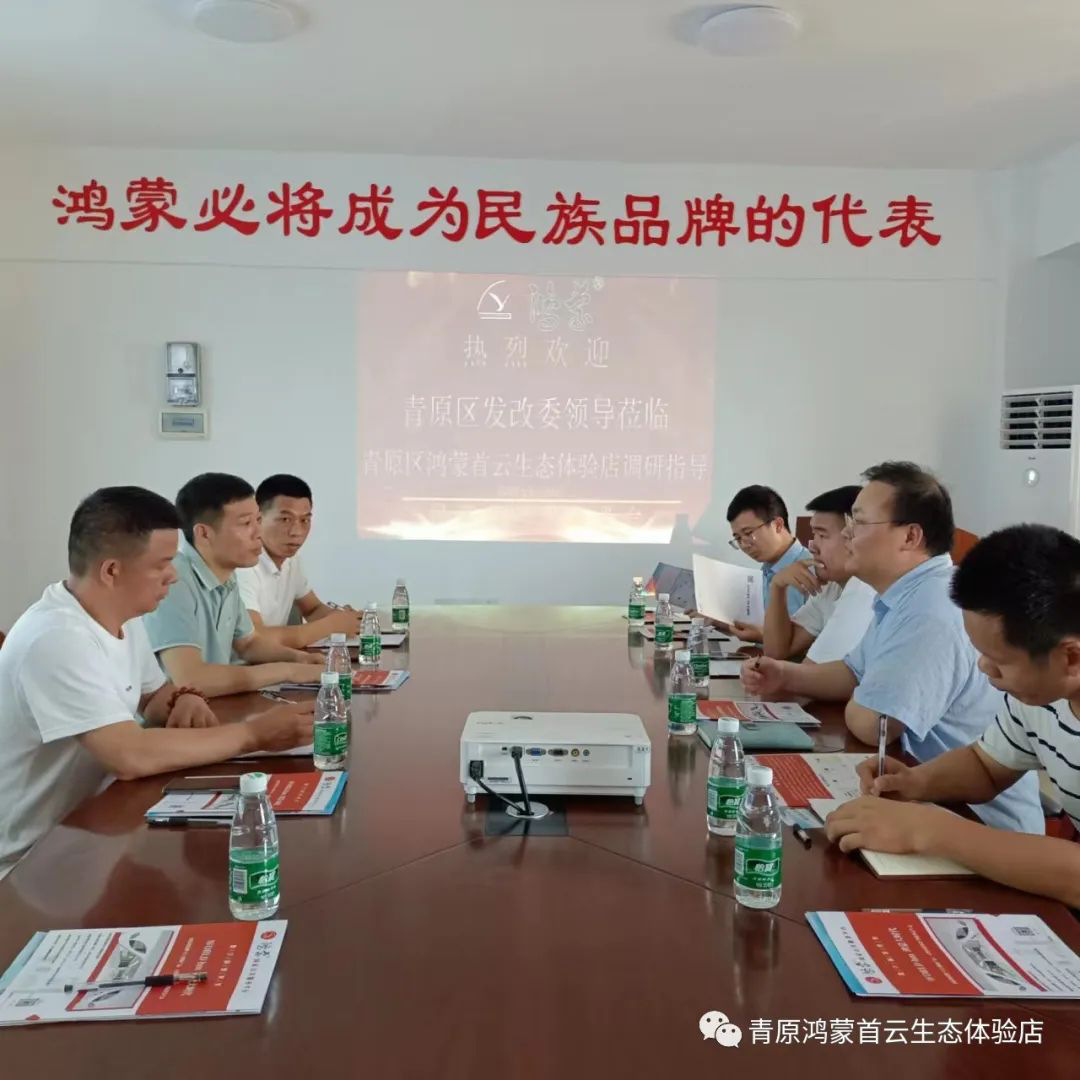 5月29日下午,青原区发改委领导莅临青原区鸿蒙首云生态体验店进行调研指导。董事长杨明富、总经理王乾太热情接待。