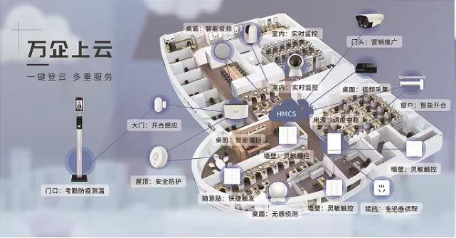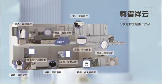 各商企根据需求开通智能云终端,自行选择产品上云、营销上云、管理上云、安防用云...(云系统一站式提供整套云服务:网站、网店、直播、展会、商圈、广告 DSP、拓客锁客、优惠券、、、以及各类智能设备:摄像机、门锁、音响、会议系统、开关、防火防水传感器、门禁一体机、打印机等)全面多维赋能企业发展。