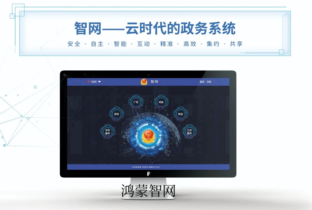 2020 年,鸿蒙推出智网监测系统,便于市场监督管理局高效监管和服务当地企业,被全国多地市监局争相采用,系统现已应用在北京、湖南、江西、河北、山西、湖北、云南、福建等近 100 个市监局,更是得到了中纪委领导的高度肯定!也标志着鸿蒙系统正式建立起服务“政府、企业、商户、网民”的新型生态!