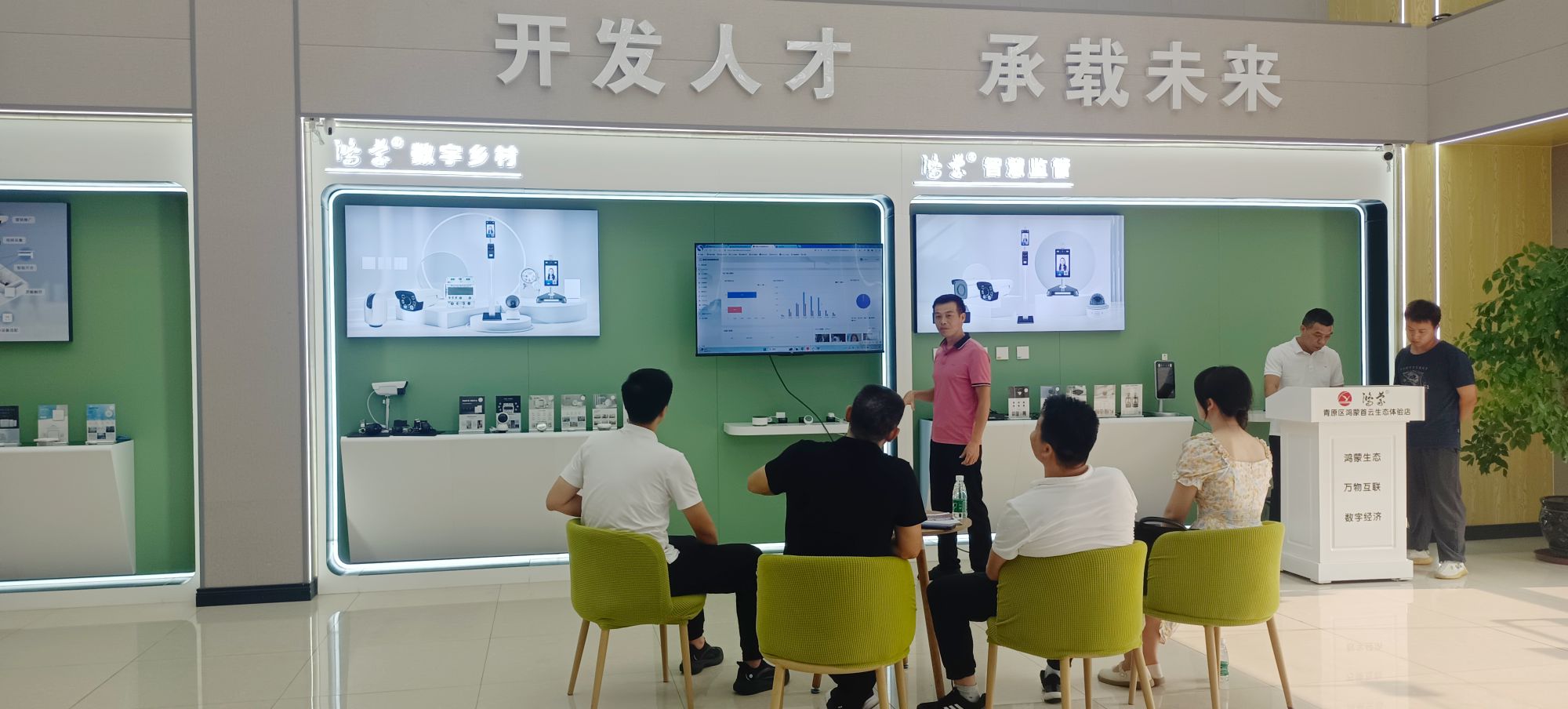 总经理王乾太向领导介绍了数字青原(平台经济、数字乡村、智慧监管)建设。以鸿蒙系统作为支持,构建本地万物互联数字青原云生态。