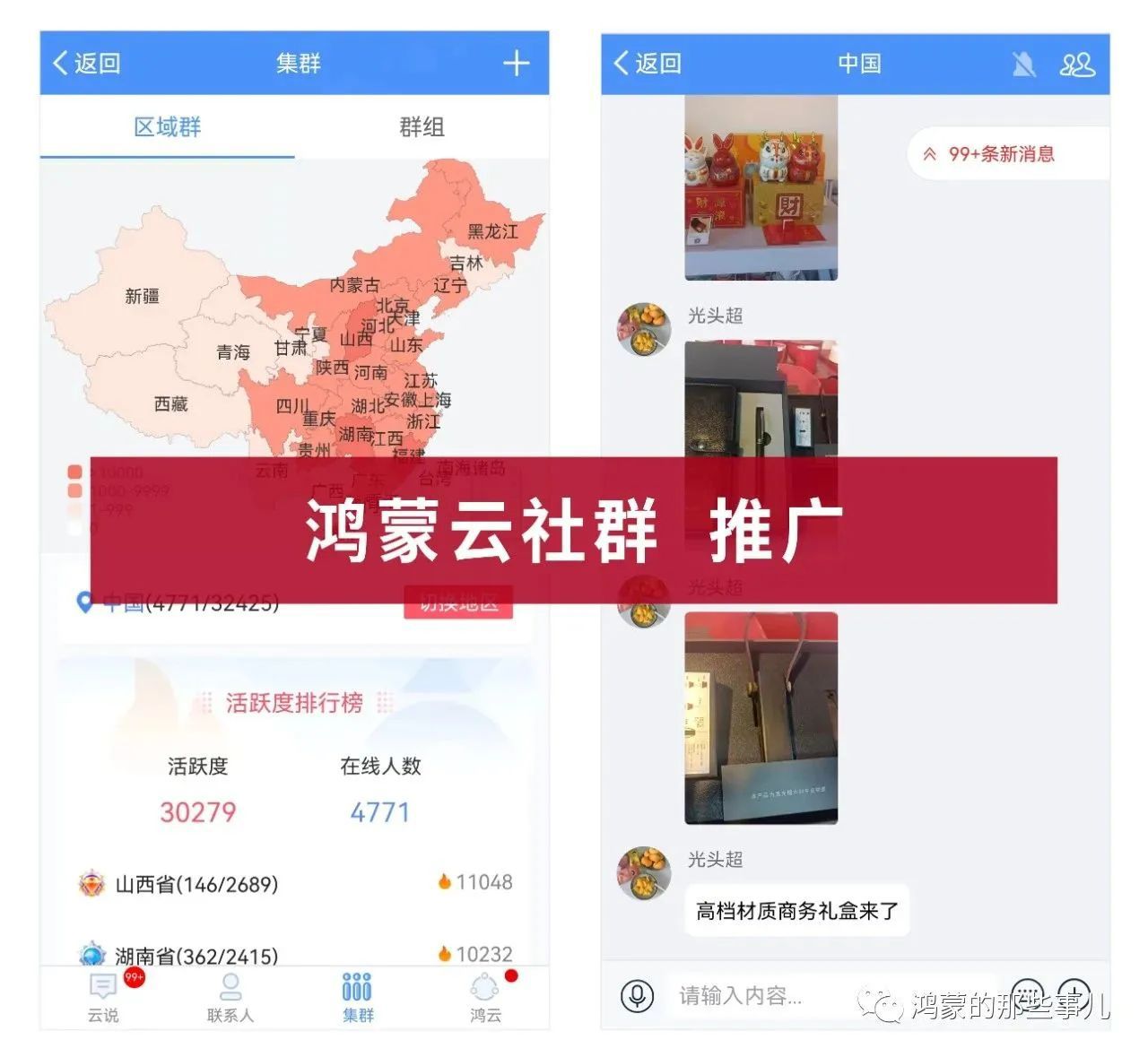 线上:全国各地鸿蒙云商城推广、云资讯推广、云社群推广。