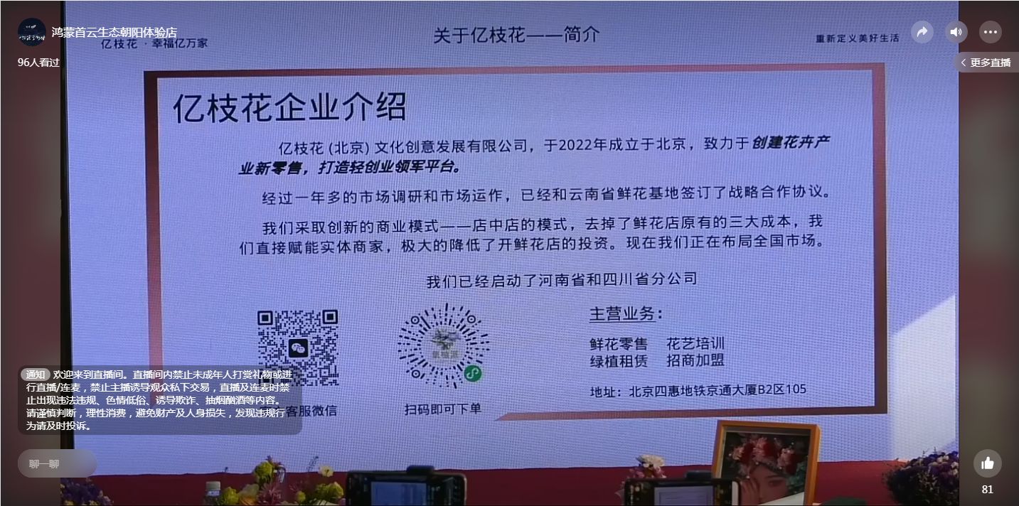 发布者:11月3日下午,亿枝花新品牌通过鸿蒙的平台直播招募合作伙伴。