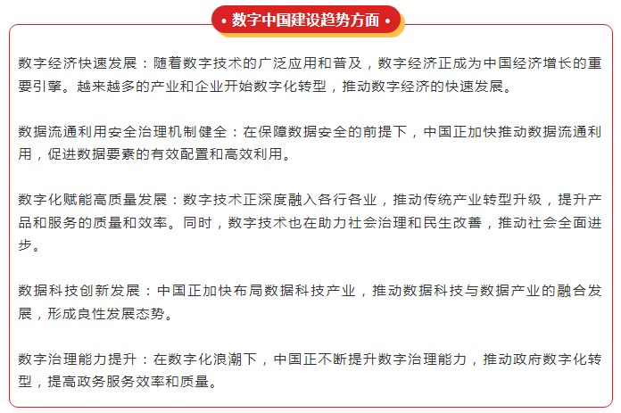 在数字化浪潮席卷全球的今天,中国正以前所未有的速度和力度推进数字中国的建设,以此助力中国式现代化,实现高质量发展。数字中国建设不仅是国家发展战略的重要组成部分,也是推动中国经济增长和社会进步的关键力量。
