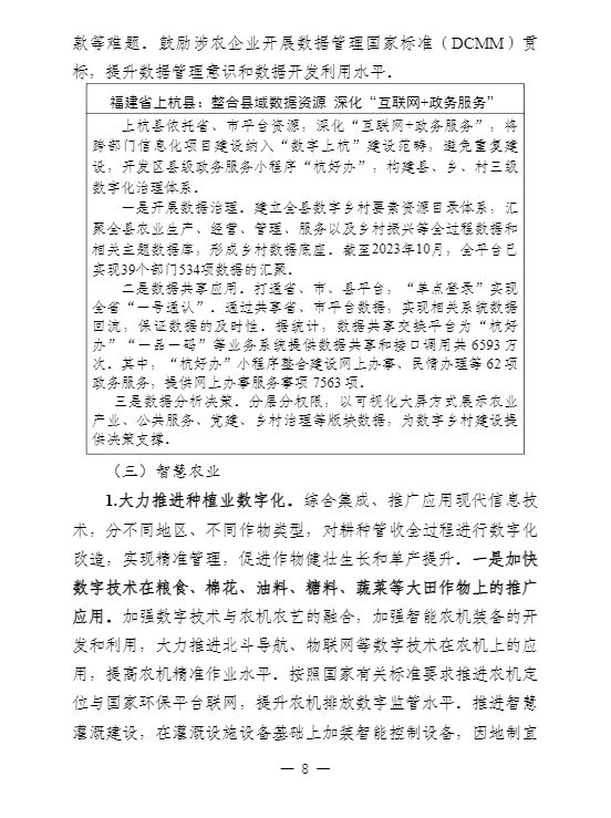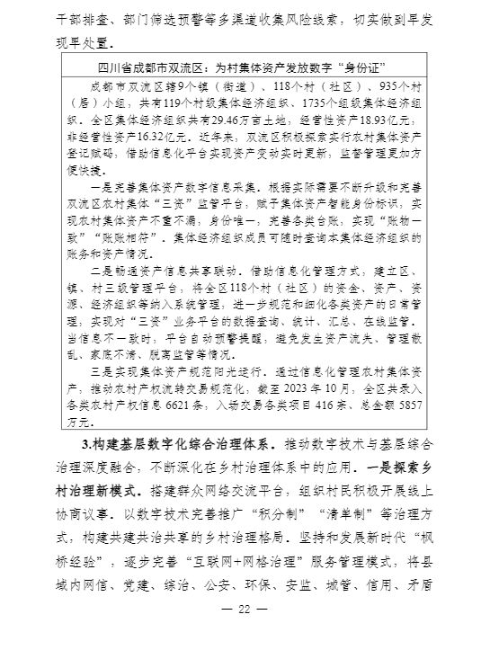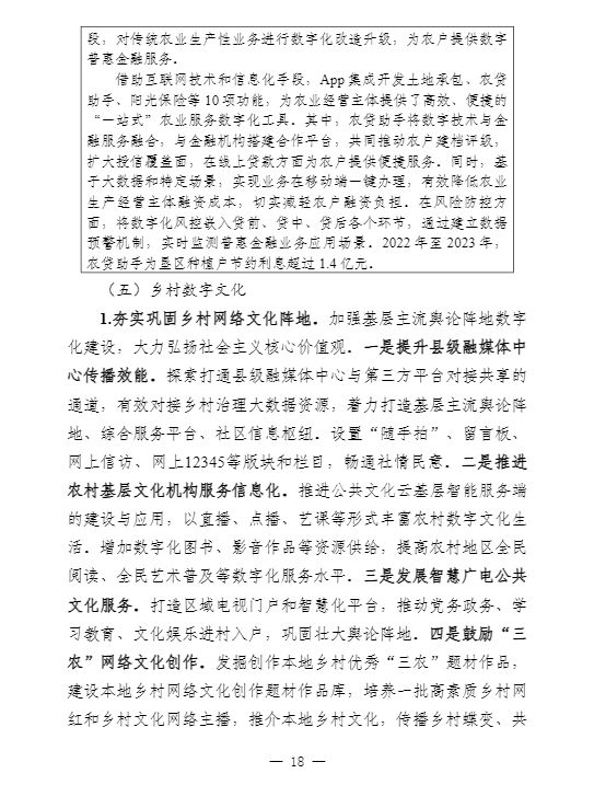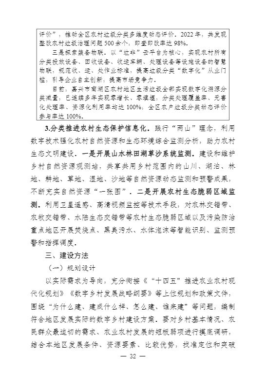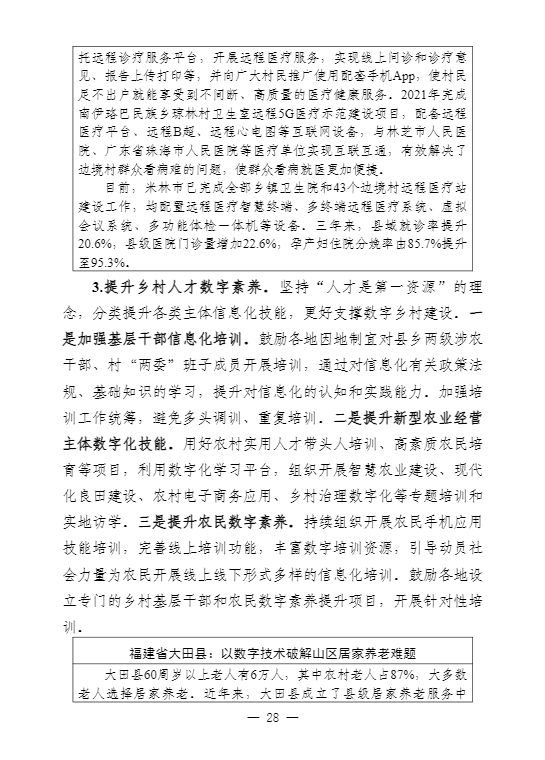 发布者:党中央、国务院高度重视数字乡村建设,把数字乡村作为全面推进乡村振兴的着力方向和建设数字中国的重要内容,作出系列决策部署。中共中央办公厅、国务院办公厅印发《数字乡村发展战略纲要》,对推进数字乡村建设作出系统安排。中央网信办、农业农村部等10部门印发《数字乡村发展行动计划(2022-2025年)》,部署了数字基础设施升级、智慧农业创新发展、数字治理能力提升等8个方面的重点行动。为落实中央部署安排,2021年7月,中央网信办、农业农村部等7部门共同发布了《数字乡村建设指南1.0》(以下简称《指南》),指导各地开展数字乡村的建设、运营和管理。一年多来,各地参照《指南》内容及有关要求,立足本地实际,积极开拓创新,推动数字乡村建设取得良好开局。