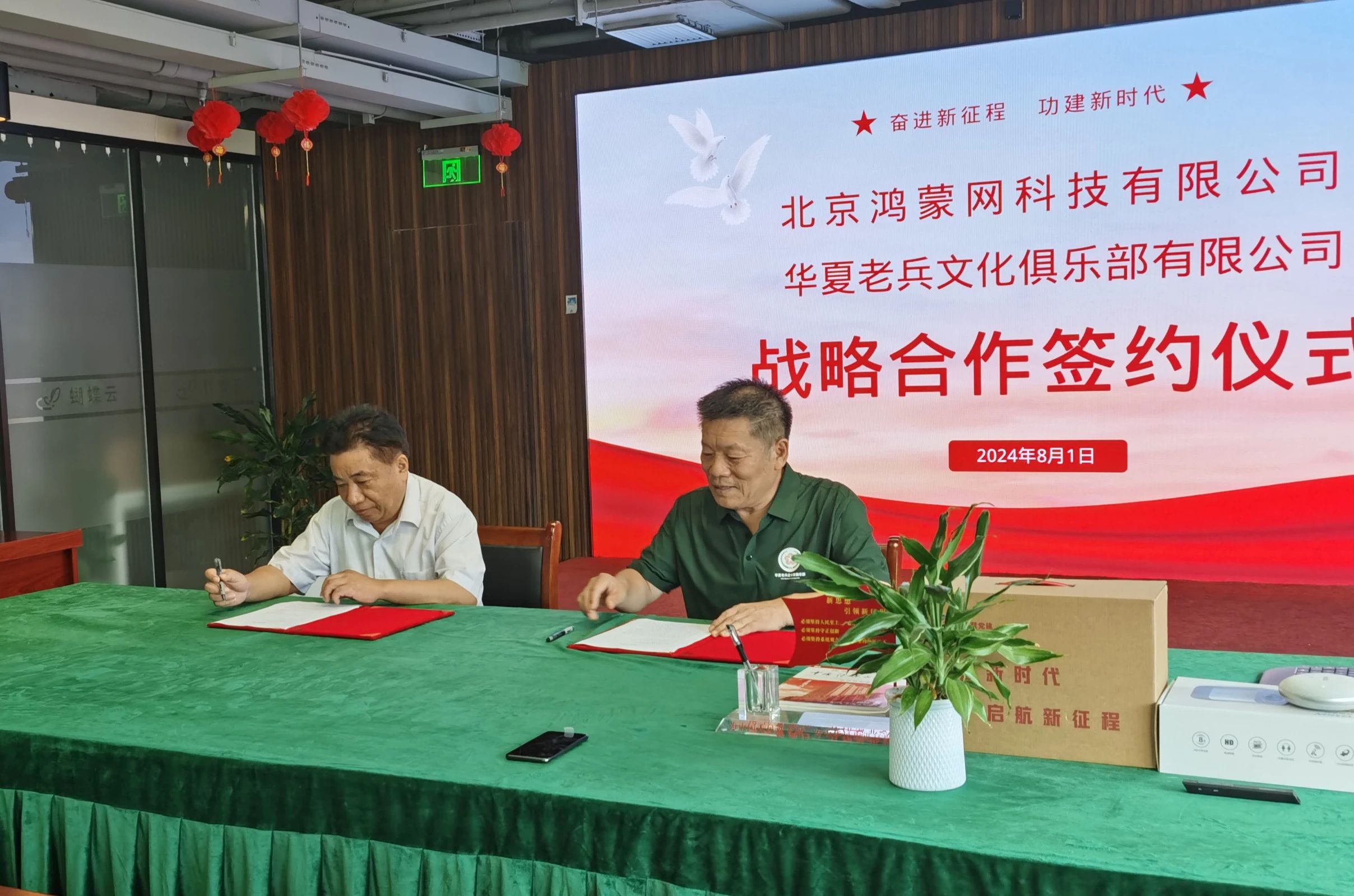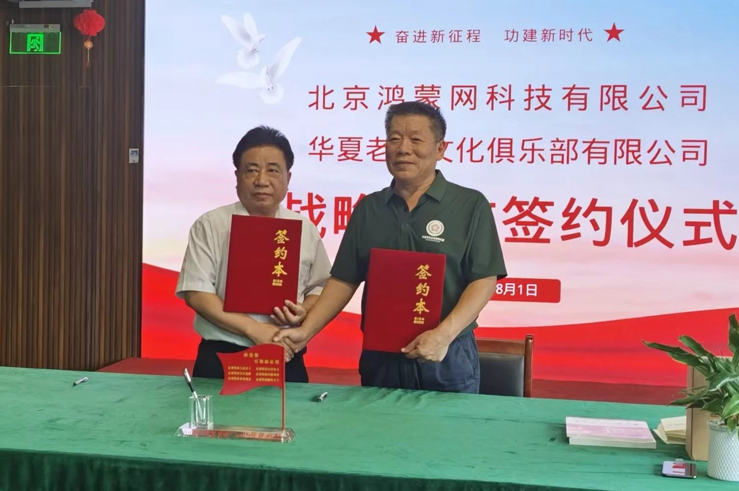 2024年8月1日,北京鸿蒙网科技有限公司和华夏老兵文化俱乐部战略合作协议在北京鸿蒙总部签署,北京鸿蒙网科技有限公司董事长郑世宝,公司市场部、技术服务部负责人,华夏老兵文化俱乐部理事长刘军、执行理事长李连祥、监事长裴天平,副理事长武宏伟、徐蕊芬、许建华、郭钱等参加了签约仪式。