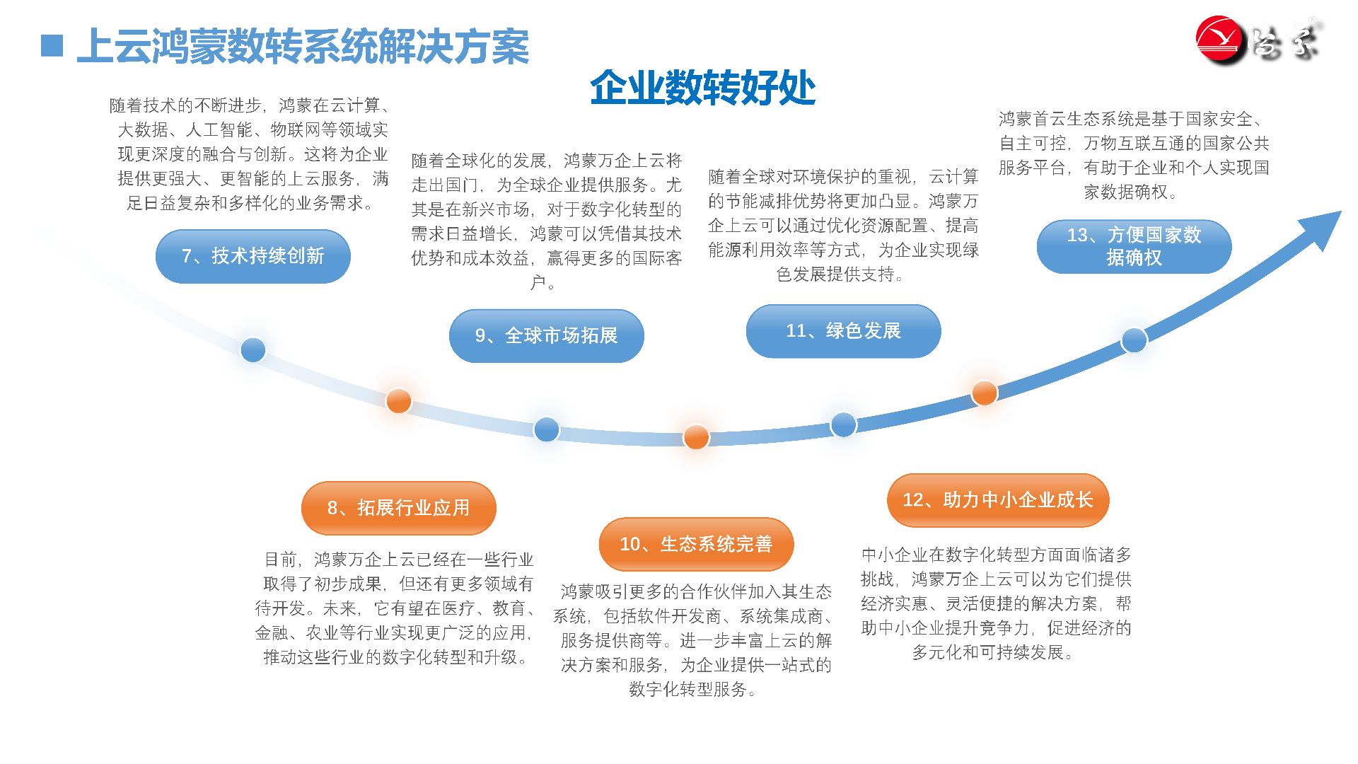 上云鸿蒙(娄底市上云网络科技有限公司),负责娄底市中小企业数字化转型业务对接;负责为企业提供全国**国家安全、自主可控、万物互联互通的鸿蒙首云生态集群系统平台,打造娄底市公共服务平台;负责为企业和个人提供实现数据确权的鸿蒙蝴蝶云APP和数字云名片;负责为企业数字化转型提供数字化软件业务系统、云平台服务 (含租赁、算力)、数字化改造设计施工服务、数据采集传输设备 (数据存储、网络、通信、智能终端)、数字化转型优秀场景建设、工业互联网平台建设、“链式”数字化转型、培训、申报、考评等全域系统解决方案;负责按国家工信部验收标准为企业提供数字化基础、数字化经营、数字化管理、数字化成效的自测评分,负责为企业运营提供鸿蒙万企上云信息化、智能化、数字化运营业务应用服务。上云鸿蒙同时联合庞大的生态体系全方位满足企业的数字化业务转型需要,其中有全国头部企业管理软件厂商金蝶软件以及行业领先“工业互联网 ”数字化综合服务商河钢数字。