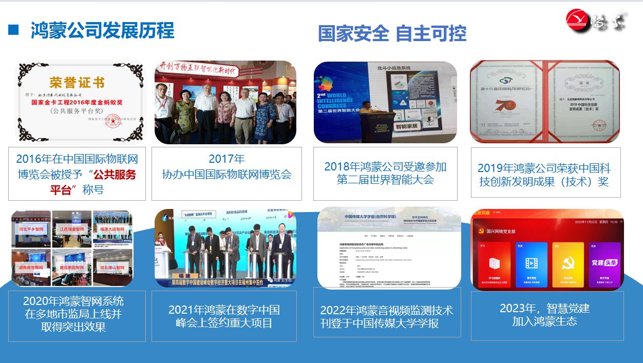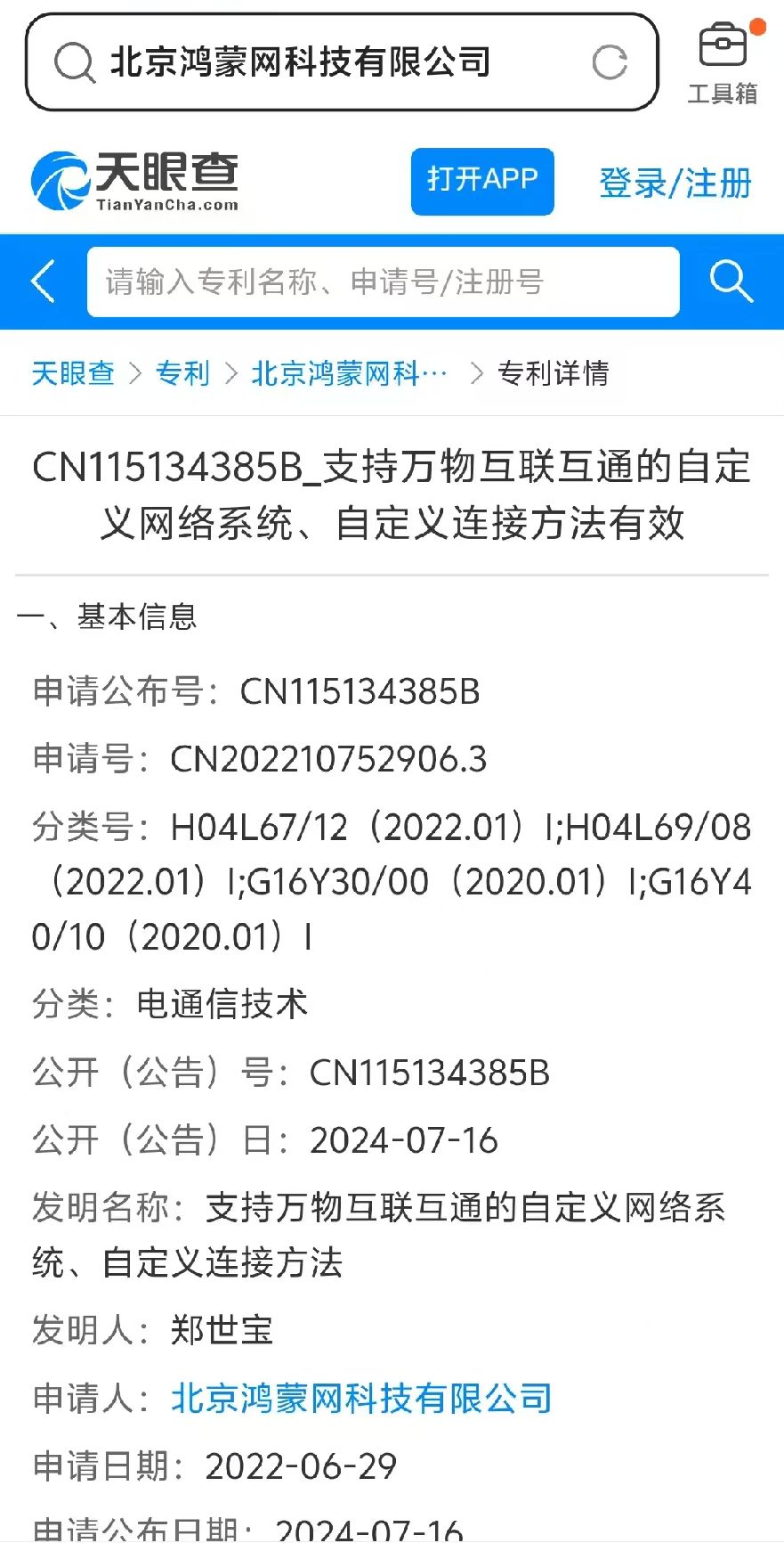 鸿蒙于2010年在国家钓鱼台国宾馆推出鸿蒙云平台,被专家们一致认为,与国外相同云计算网络相比,鸿蒙的应用模式和服务理念处于国际领先水平!鸿蒙在云计算应用领域,为国争夺了话语权!2016年鸿蒙公司荣获国家金卡工程“公共服务平台”金蚂蚁奖。2024年7月16日北京鸿蒙网科技有限公司获得国家专利局公布的发明专利“支持万物互联互通的自定义网络系统、自定义连接方法”,公布号CN115134385B,发明人郑世宝。