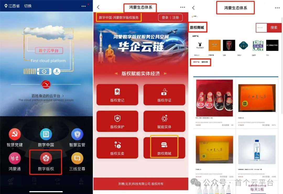 企业可通过数权商城挂售鸿蒙数字版权赋能商品,著作权人获取版权许可使用费现金流,加速项目发展。例如,春节期间“米面油”企业通过数权商城销售鸿蒙版权赋能商品,消费者同步获得鸿蒙数字版权资产(HMDC),形成“消费即投资”的双向收益模式。