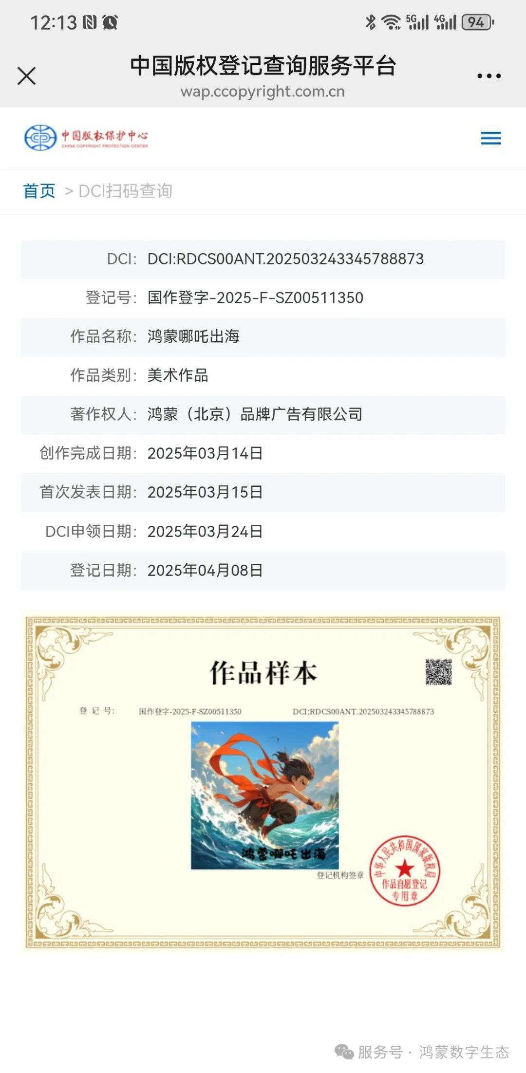“鸿蒙哪吒戏水”、“鸿蒙哪吒拔河”、“鸿蒙哪吒出海”获得中国版权保护中心颁发版权助力知识产权强企注入