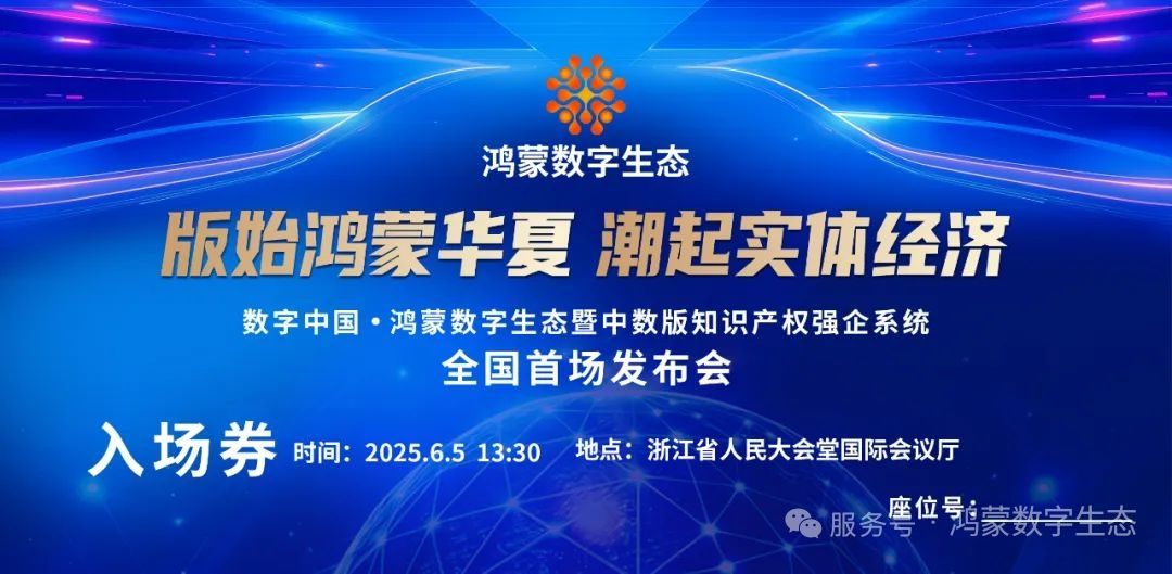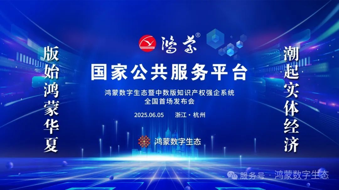 鸿蒙数字生态暨中数版知识产权强企系统正式上线新闻发布会将于今天下午在浙江省人民大会堂国际会议厅举行!系统网址:http//hmbq.net
