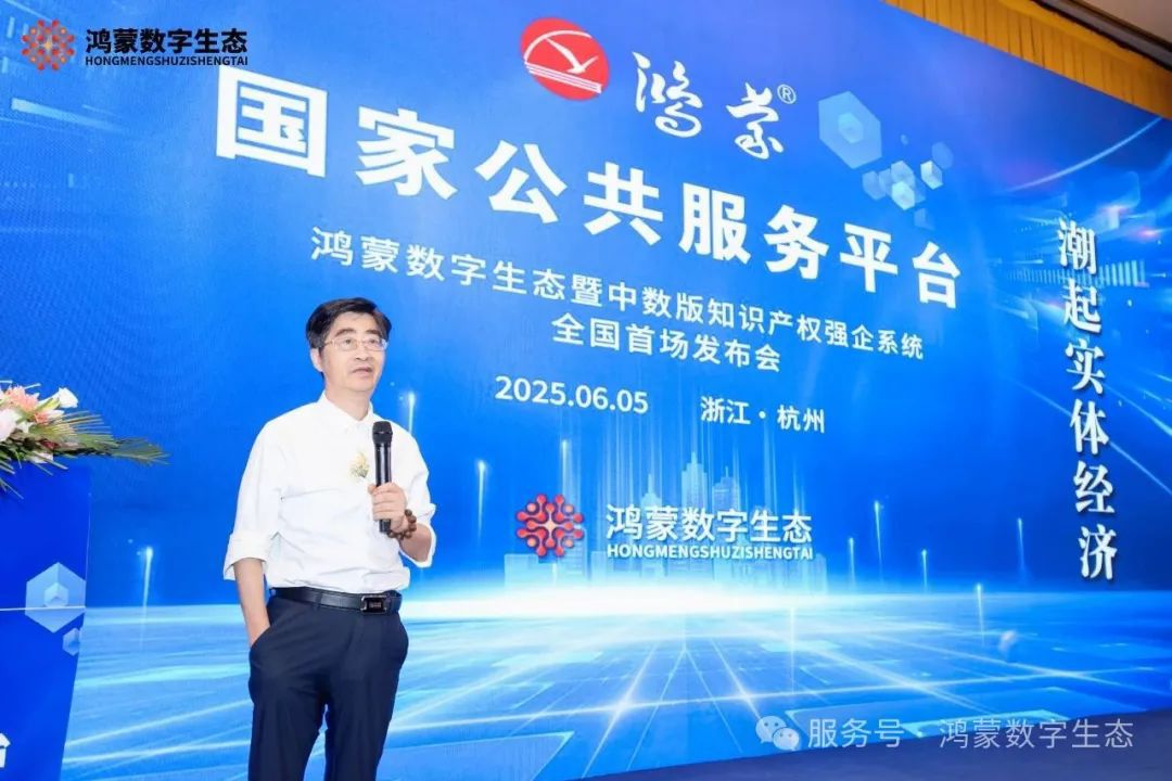 省市相关部门领导为本次活动的顺利开展提供了坚实的保障和有力的指导。中国中小企业协会特邀副会长周德文先生会上致辞:今天,我们相聚在美丽的西子湖畔,共同见证“数字中国·鸿蒙数字生态暨中数版知识产权强企系统”上线这一历史性时刻。作为长期关注中小企业发展的工作者,我深切感受到,这场发布会不仅是数字技术与实体经济深度融合的里程碑,更是中小企业转型升级的“破局之战”!